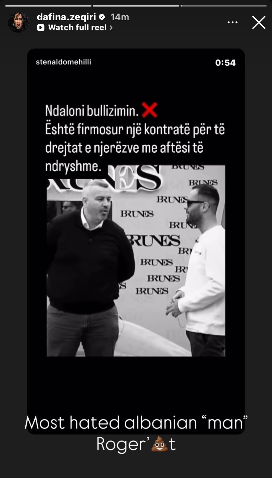 Kjo situatë ka nxitur reagimin e menjëhershëm të Dafinës, e cila nuk ka kursyer fjalët ndaj banorit. Në reagimin e saj publik, ajo e cilëson Rogertin si “burri më i urryer në Shqipëri”, duke shprehur hapur indinjatën për mënyrën se si ai iu drejtua Stenaldos.