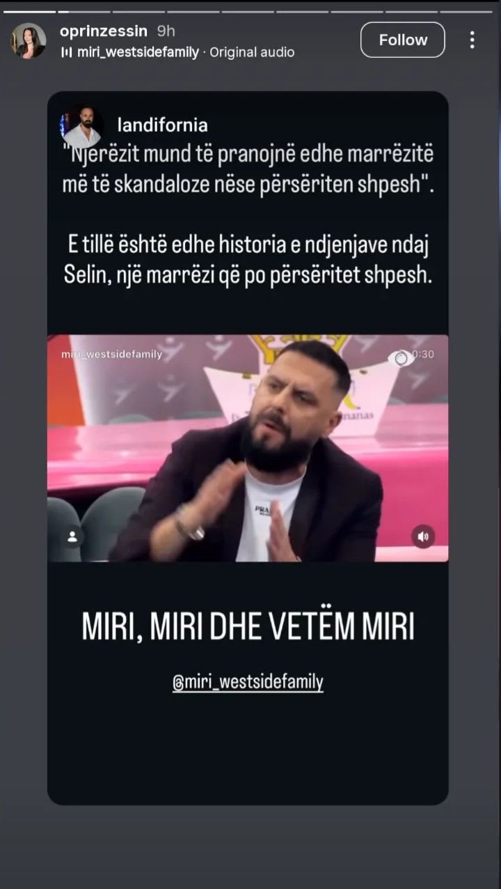 Në mesazhin e rishpërndarë hidhen poshtë zërat për një lidhje të mundshme mes Mirit dhe Selinës, duke u cilësuar si një histori e ekzagjeruar që po përsëritet vazhdimisht. Në postim thuhej se njerëzit shpesh arrijnë të besojnë edhe gjëra të pavërteta kur ato përsëriten shpesh, ndërsa theksohej se e gjithë kjo histori është një “marrëzi” që po rikthehet vazhdimisht në diskutim.